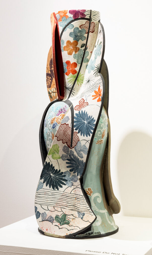 As the seventies played out, a generation of artists like Andrea Gill, Nancy Selvin, and Betty Woodman did not just embrace the decorative strategies of the Pattern & Decoration Movement, they also sought to place a feminist spin on their work. As ceramics become more common in a fine art context, hierarchies surrounding different materials faded, giving artists the ability to experiment and construct narrative and meaning through pattern. Long denigrated as “decorative” and closely associated with domesticity, patterns are now an integral part of the language of contemporary art.