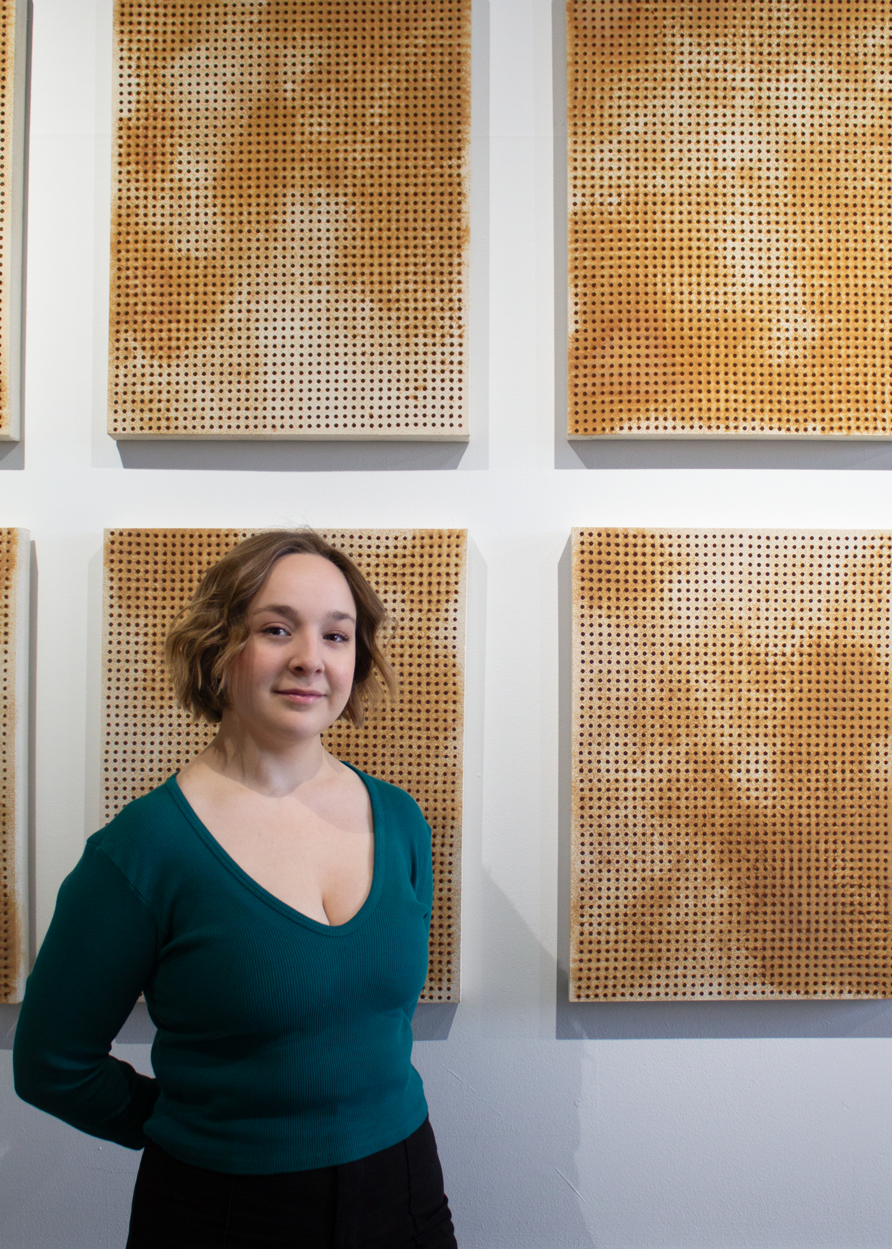 Kirstin Dunlap’s work is deeply rooted in her understanding of the personal connection between the body and the Earth. Every individual’s life experience is shaped by their relationship with these two bodies—both of which undergo growth, erosion, and decay processes. For Dunlap, there is a striking similarity between these two realms: both are places of tension, where struggles for survival unfold. She sees herself in the fringes of the Earth, in areas where natural forces collide. This conflict, she reflects, mirrors a personal battle within her own body, where her immune system mistakenly attacks itself, resulting in a body that is progressively disabling itself. Despite these physical challenges, Dunlap remains captivated by the beauty and harmony inherent in life. She finds awe in the intricate cycles of nature, from the unseen life beneath the soil to the vast reaches outside the atmosphere. Her practice centers on creating moments of pause, inviting others to reflect on the wonder she experiences in the world around her. Working in both printmaking and installation, she brings attention to elements of nature that astound her, using abstract representations of her own body to address themes of fragility and strength. In her art, Dunlap aims to offer a space for reflection—a brief but profound glimpse into the grandness of life. She recognizes that while she cannot hold the entire world in her hands, she has the ability to capture a sliver of it, filling a room with the power of that moment.